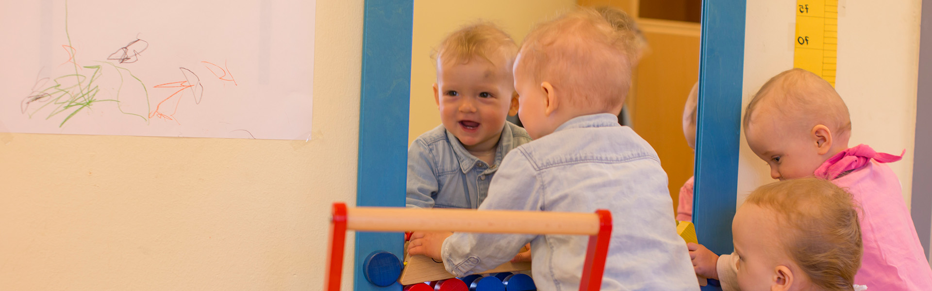 In unserer Kinderkrippe lernen die Kinder die Welt kennen. Wir nehmen maximal 12 Kinder mit bis zu 3 integrativen Plätzen auf, sodass wir jedes Kind intensiv betreuen und fördern können.